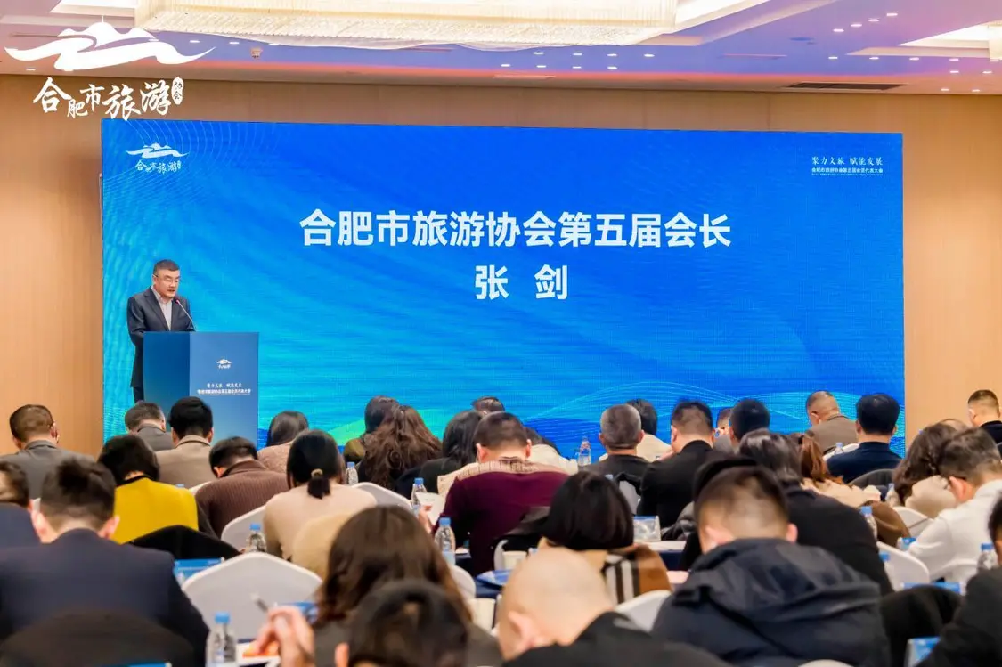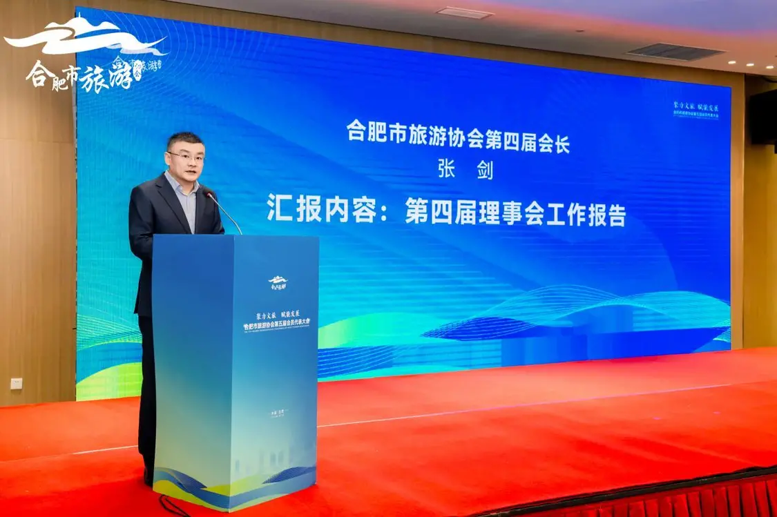 张剑在就职讲话中表示,合肥市旅游协会作为政企对接、行业联动的重要桥梁纽带,历届理事会在服务行业发展、反映企业诉求、促进行业自律等方面成效显著。新一届理事会将紧紧围绕市委、市政府战略部署,以服务会员、行业和政府为宗旨,重点推进以下四方面工作:一是强化桥梁纽带作用,搭建高效政企沟通平台,精准反映行业诉求,推动惠企政策落地见效。二是打造资源整合平台,深化“旅游+”融合发展,推动旅游与科技、文化、工业、农业、体育等产业联动,丰富合肥文旅的内涵与体验。三是树立创新服务标杆,通过行业培训、论坛研讨、市场对接等活动赋能会员,提升会员归属感与获得感。四是塑造“合肥旅游”品牌,讲好新时代合肥故事。整合宣传力量,线上线下协同推广,擦亮“大湖名城、创新高地”城市形象。