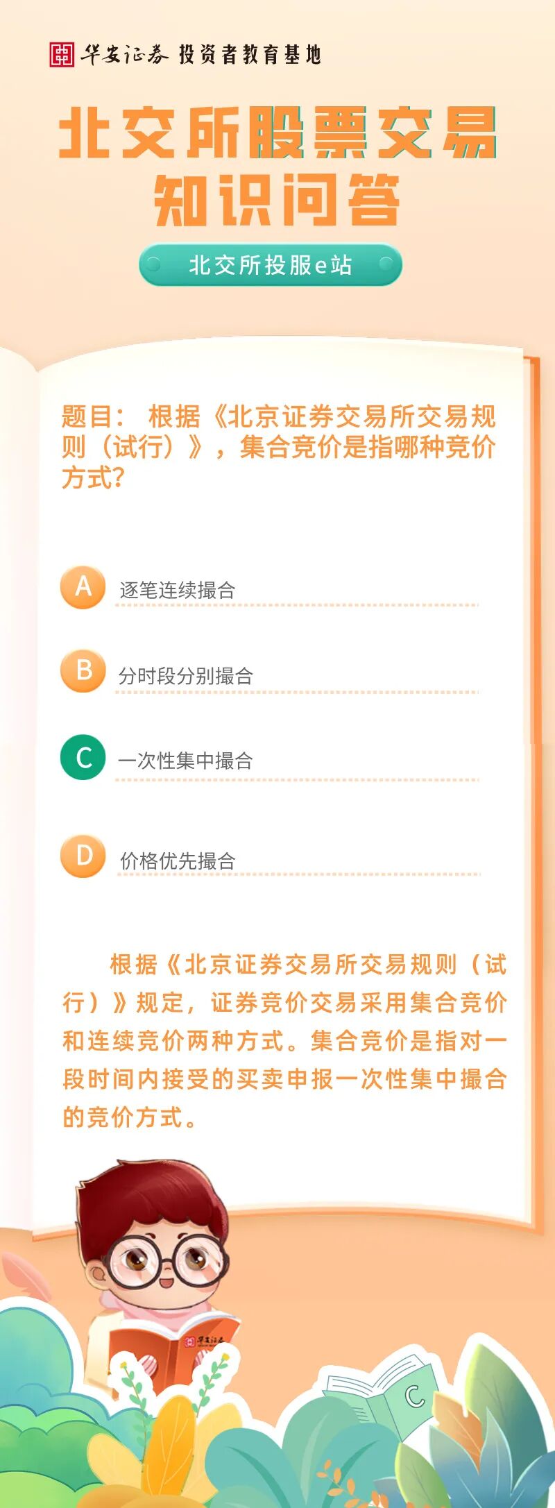 北交所投服e站 | 北交所股票交易知识问答:集合竞价是指哪种竞价方式?来源:华安证券投教基地 | 作者: | 发表于:2026/1/21 | 阅读量:646265 |