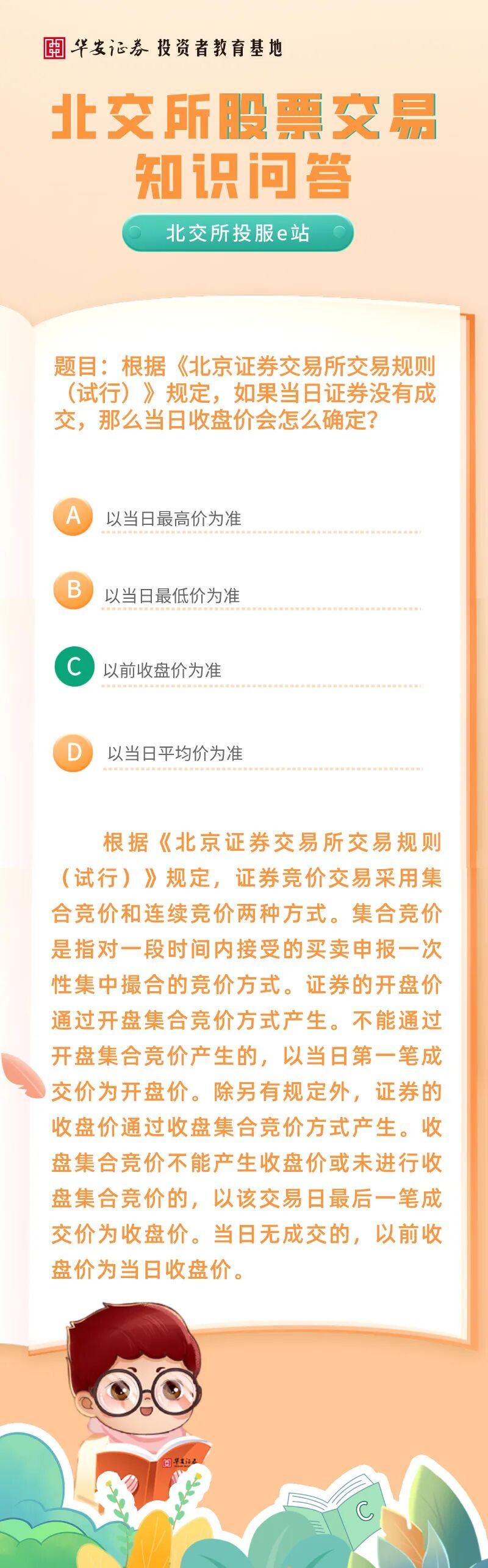 北交所投服e站 | 北交所股票交易知识问答:如果当日证券没有成交,那么当日收盘价会怎么确定?来源:华安证券投教基地 | 作者: | 发表于:2026/1/28 | 阅读量:725644 |