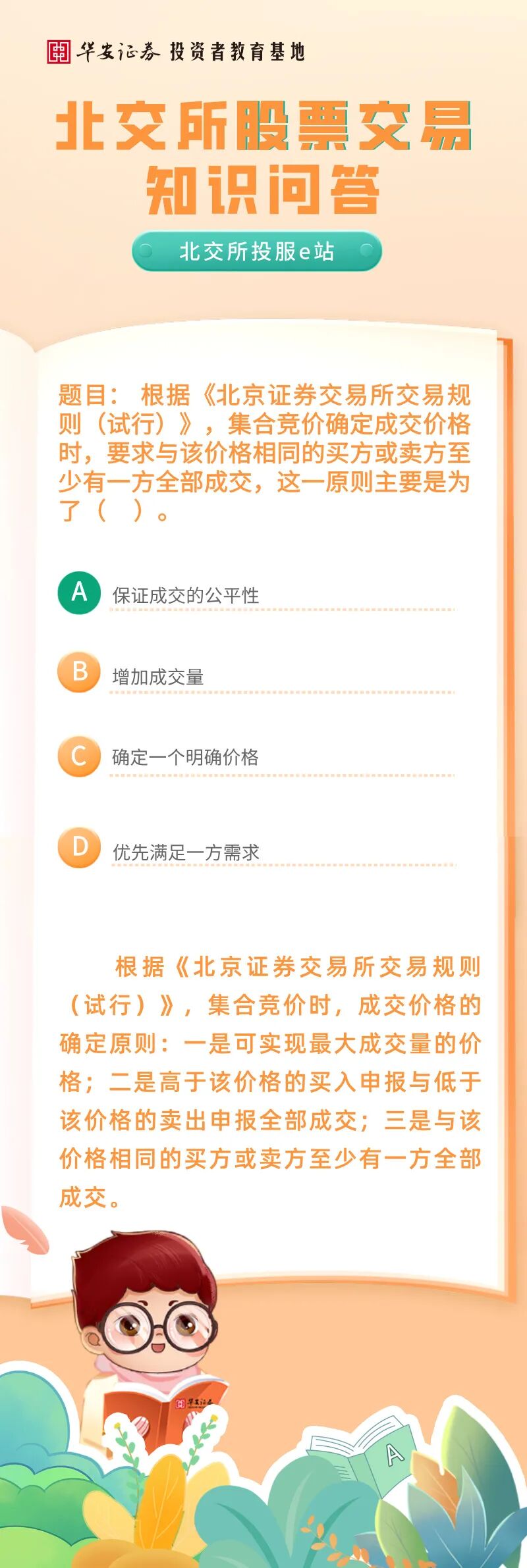 北交所投服e站 | 北交所股票交易知识问答:与某成交价格相同的买方或卖方至少有一方全部成交,这一原则主要是为了?来源:华安证券投教基地 | 作者: | 发表于:2026/1/31 | 阅读量:568635 |