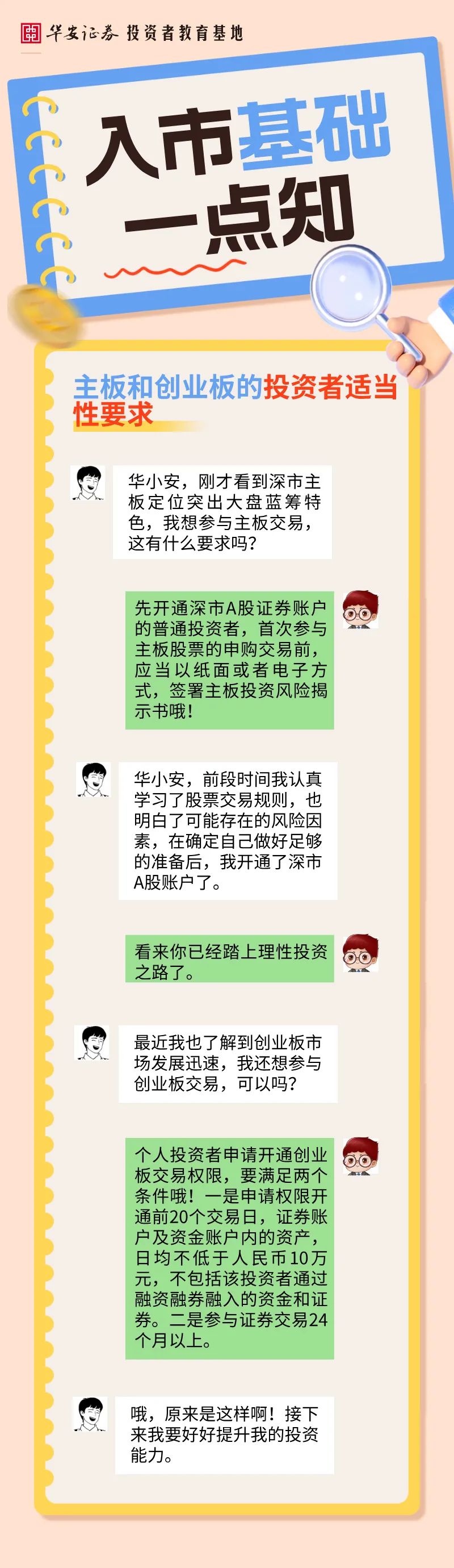 华小安惠学习 | 入市基础一点知:主板和创业板的投资者适当性要求