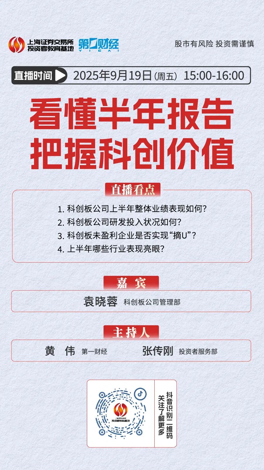 【金融教育宣传周】投教分享 |【上交所投教】直播预告:看懂半年报告 把握科创价值来源:华安证券投教基地 | 作者: | 发表于:2025/9/19 | 阅读量:892592 |
