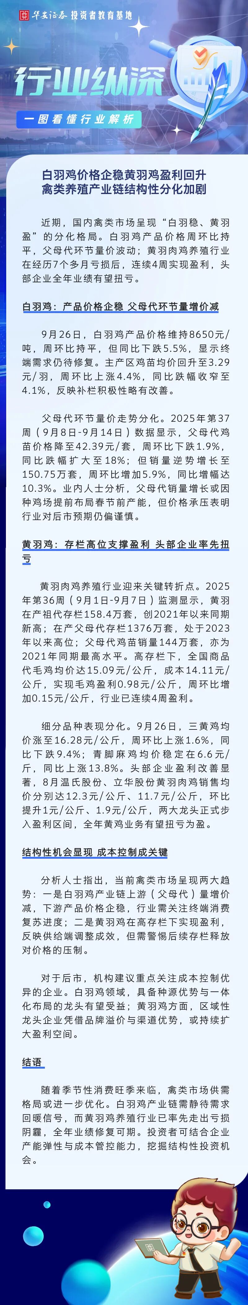 行业纵深 | 白羽鸡价格企稳黄羽鸡盈利回升 禽类养殖产业链结构性分化加剧