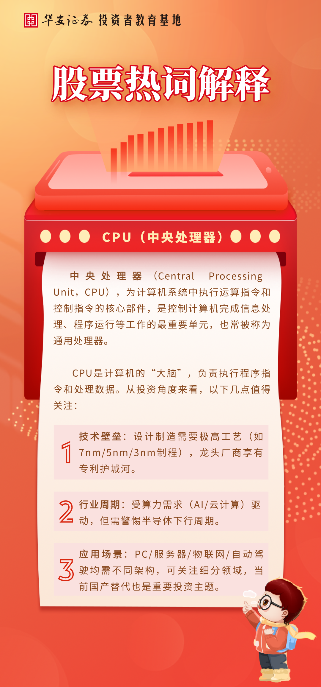 华小安惠学习 | 股票热词解释:CPU(中央处理器)来源:华安证券投教基地 | 作者: | 发表于:2025/10/24 | 阅读量:867669 |