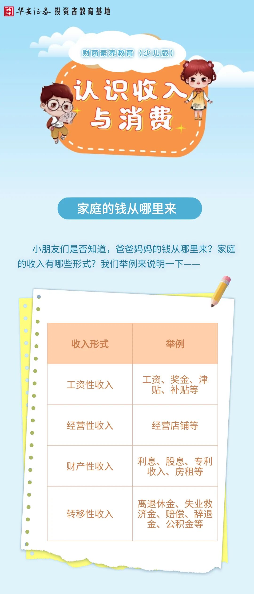 国民教育 | 认识收入与消费:家庭的钱从哪里来来源:华安证券投教基地 | 作者: | 发表于:2025/10/24 | 阅读量:885639 |
