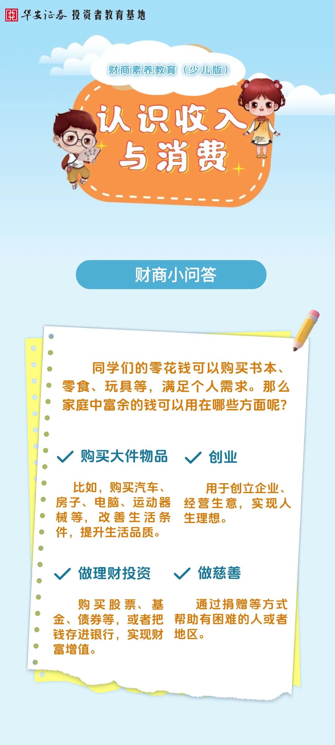 国民教育 | 财商小问答:家庭中富余的钱可用于哪些方面?来源:华安证券投教基地 | 作者: | 发表于:2025/10/28 | 阅读量:859715 |