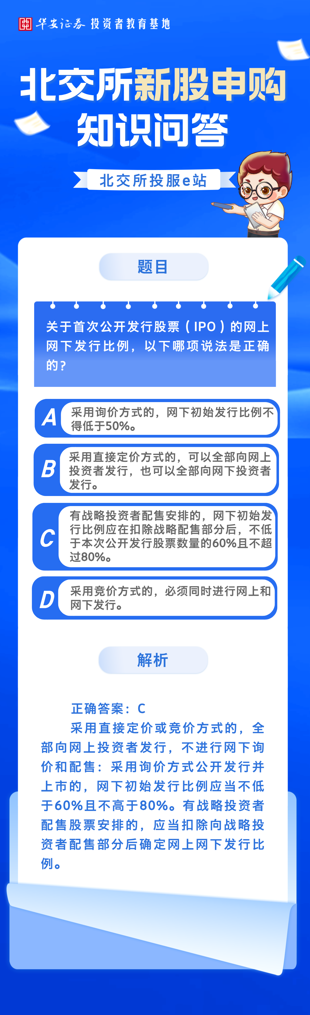 北交所投服e站 | 北交所新股申购知识问答:关于首次公开发行股票(IPO)的网上网下发行比例,描述正确的是?来源:华安证券投教基地 | 作者: | 发表于:2025/11/12 | 阅读量:825616 |