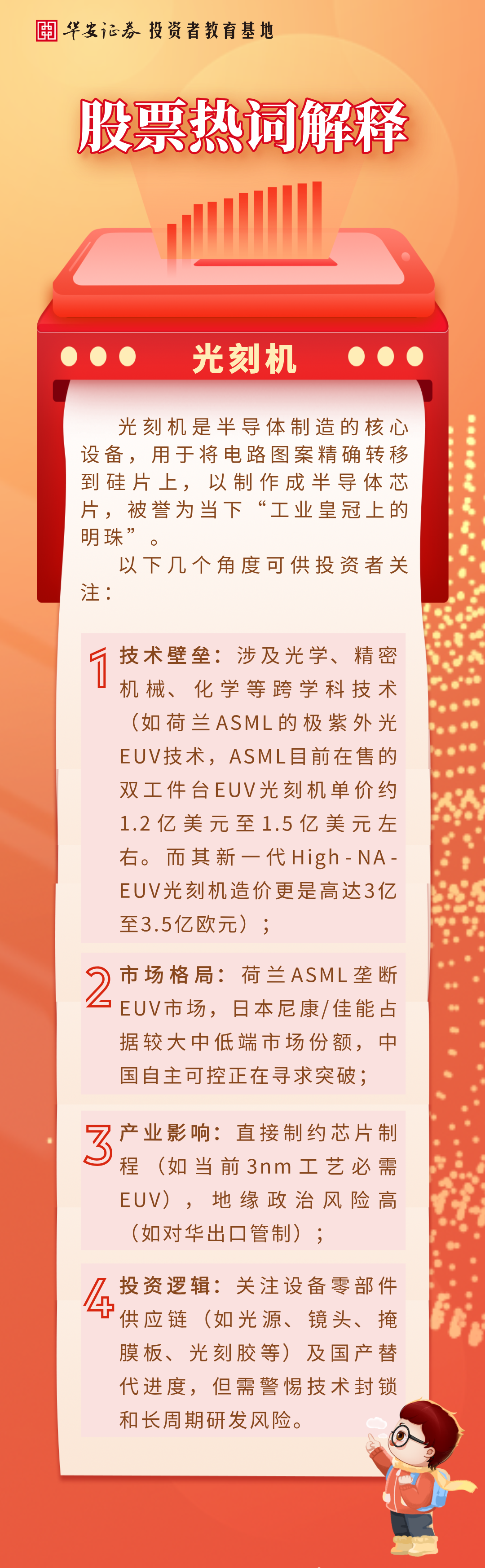 华小安惠学习 | 股票热词解释:光刻机来源:华安证券投教基地 | 作者: | 发表于:2025/11/12 | 阅读量:825215 |