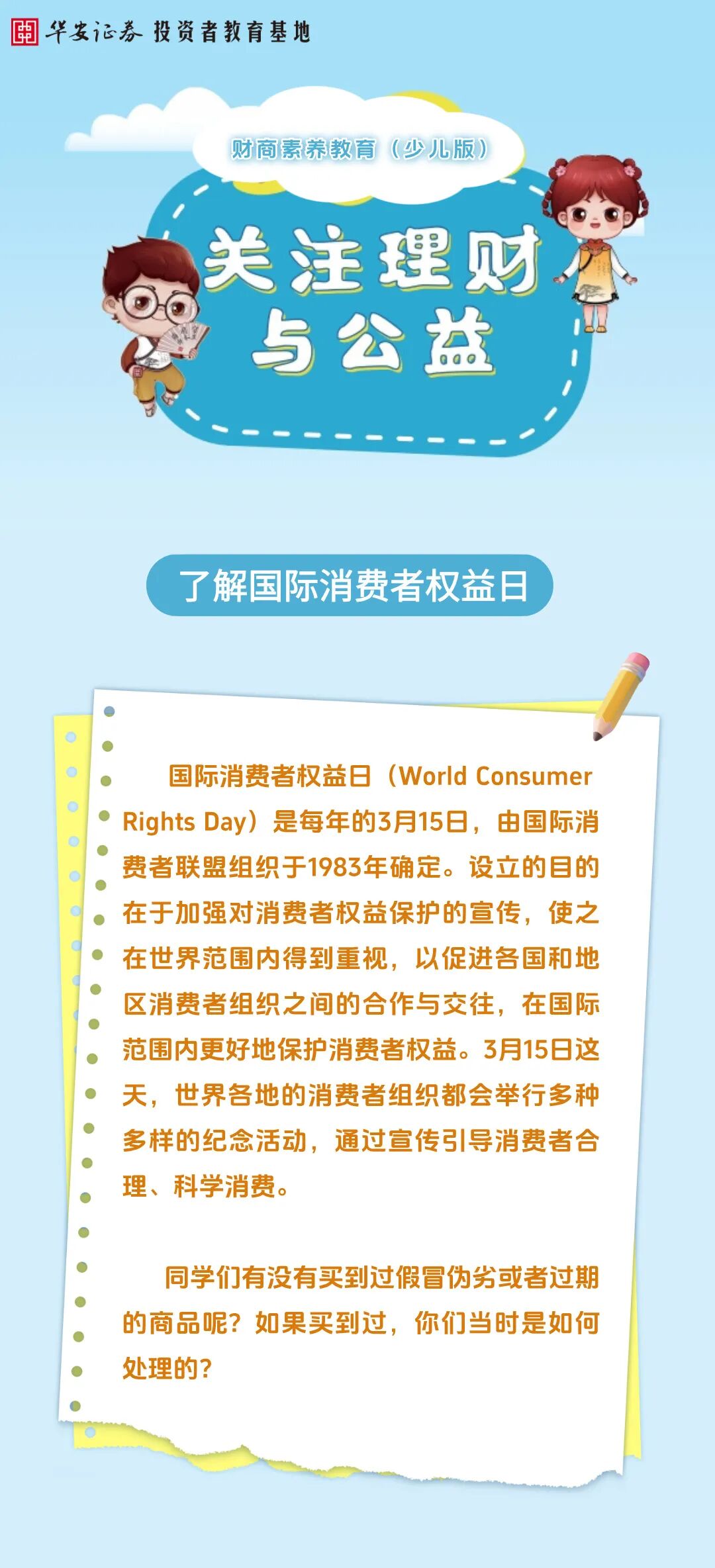 国民教育 | 关注理财与公益:了解国际消费者权益日来源:华安证券投教基地 | 作者: | 发表于:2025/11/26 | 阅读量:801059 |