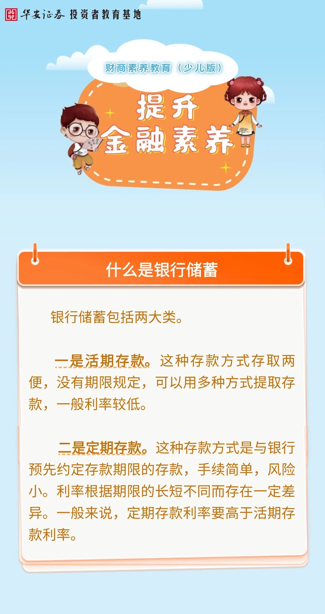 国民教育 | 提升金融素养:什么是银行储蓄来源:华安证券投教基地 | 作者: | 发表于:2025/11/26 | 阅读量:810147 |