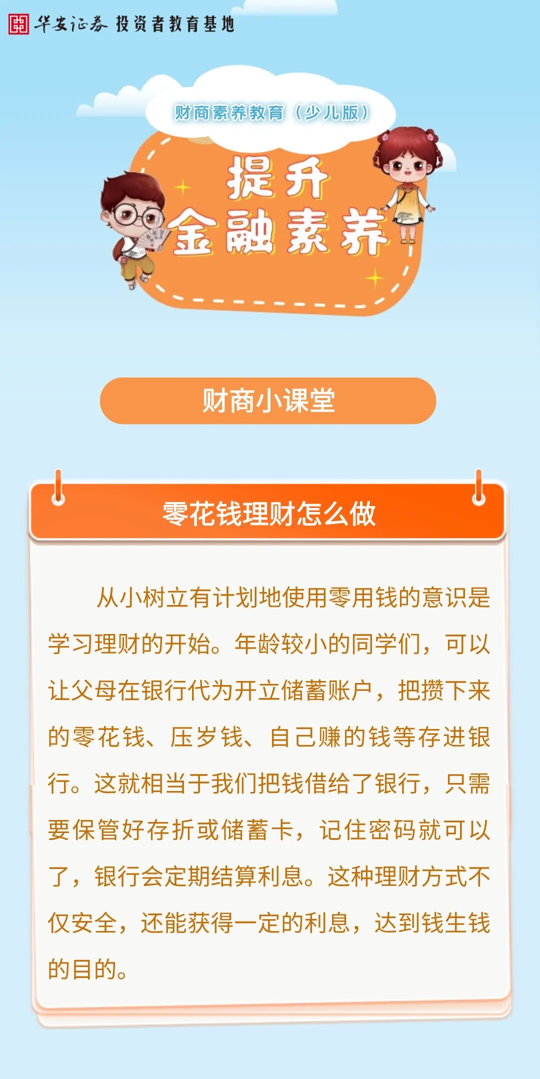 国民教育 | 财商小课堂:零花钱理财怎么做来源:华安证券投教基地 | 作者: | 发表于:2025/12/1 | 阅读量:823563 |