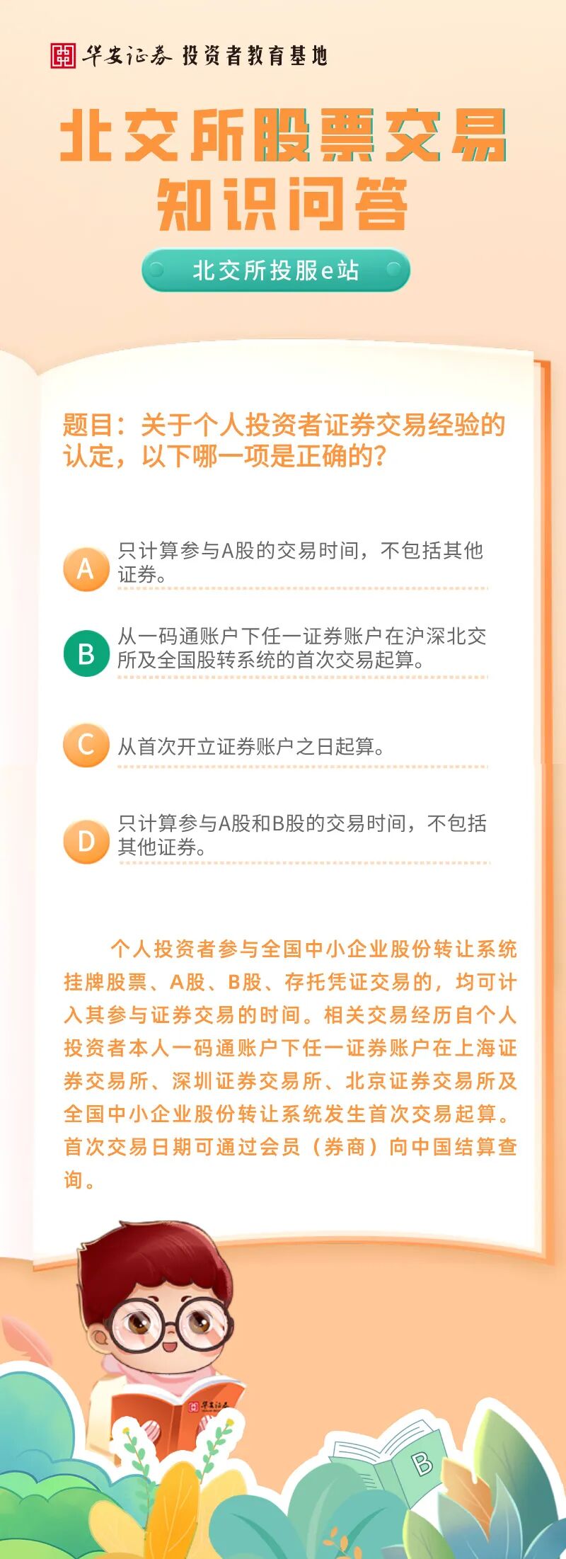 北交所投服e站 | 北交所股票交易知识问答:关于个人投资者证券交易经验的认定,以下哪一项是正确的?来源:华安证券投教基地 | 作者: | 发表于:2025/12/22 | 阅读量:618707 |